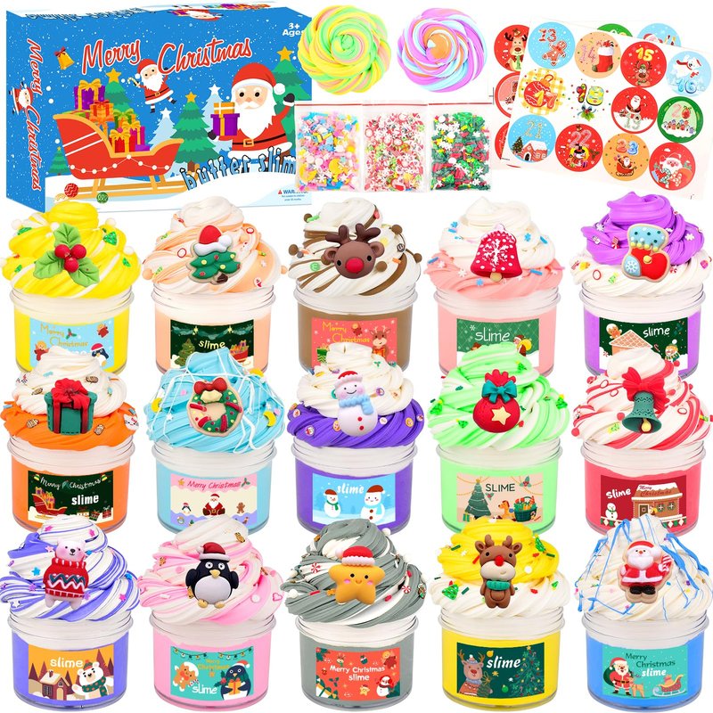- 🎁Nice Christmas Gift:Every surprise for kids makes a great gift, and so does our 15pack Christmas Butter Slime Kit