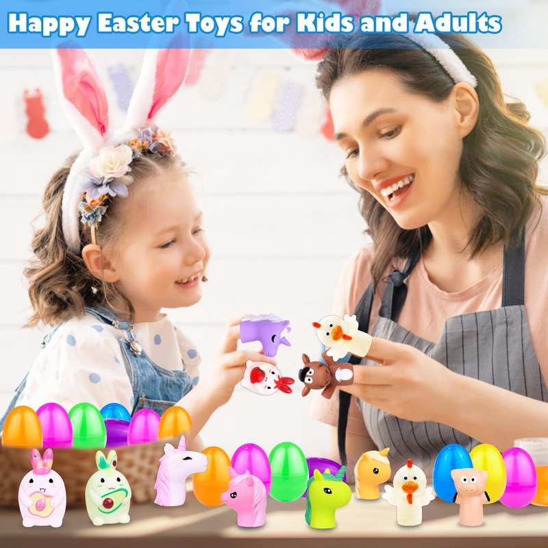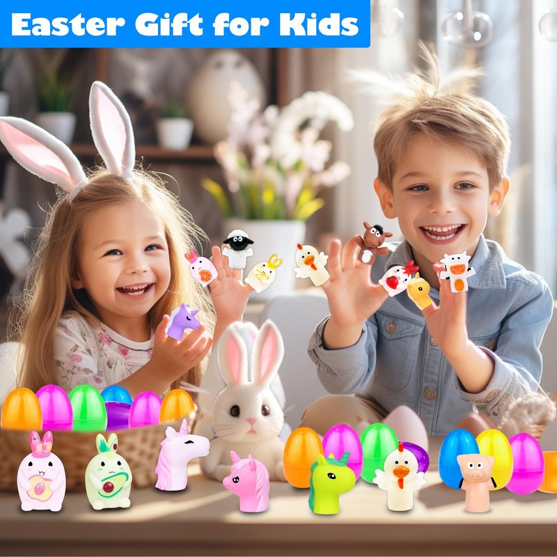 15 Pack Easter Eggs Filled Animal Finger Puppets Easter Basket Stuffers 3.3" Plastic Easter Eggs Fillers Bunny Chick Fidget Toys Surprise Eggs Easter Hunt for Kids Girls Boys Classroom Party Favor