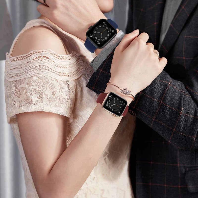 - 【Soft Silicone Material】The stylish apple watch bands made of durable and premium soft silicone material, lightweight, skin-friendly, smooth surface, no irritation to the skin, also sweat & water resistant. You can wear iwatch strap all day long.
