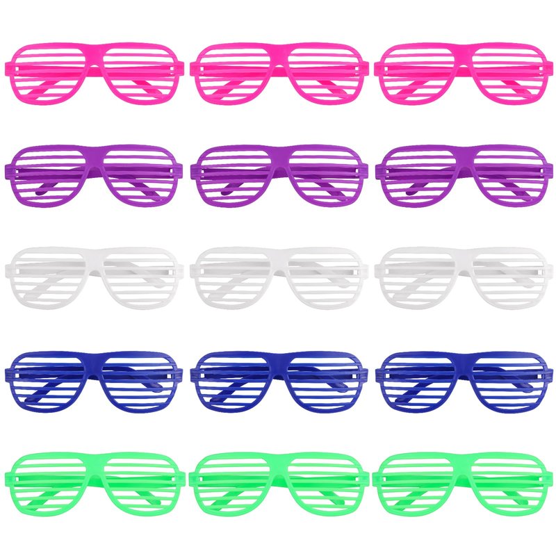 15 Pack Sunglasses Party Favors Shutter Shades Glasses 80s Party Decorations Kids Plastic Sunglasses Neon Shutter Party Glasses for Adults Hora Loca Party Supplies Disco Prop Neon Accessories