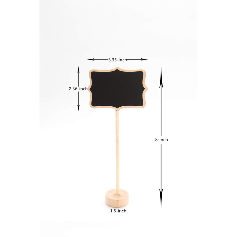 - Great Material: our mini chalkboards and stands are made of High quality wood, Package includes 15 mini chalkboards, the head of the chalkboard is 2. 36" X 3. 35", there is plenty of room for you to write. (Water-based chalk and replacement stickers are included)