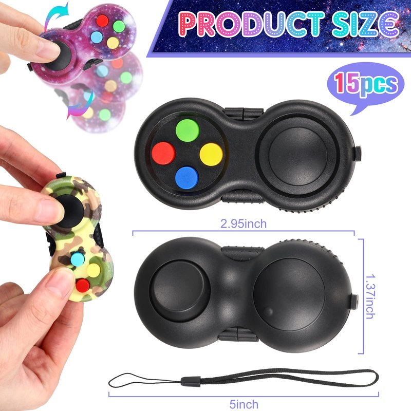 Features: The handheld game controller is helpful for most people to reduce their screen time and focus on thinking and the present. The retro classic controller can be applied as a practical gift for your friend, families or other people who want to relieve stress. Specifications: Material: ABS plastic and rubber Color: as shown in pictures Size: approx. 2.8 x 1.4 x 1 inch Package includes: 15 x Pads Notes: Manual measurement, please allow slight errors on size. The color may exist a slight difference due to different screen displays. Suitable for people over 12 years old. Small items are included, please use with care to avoid swallowing.