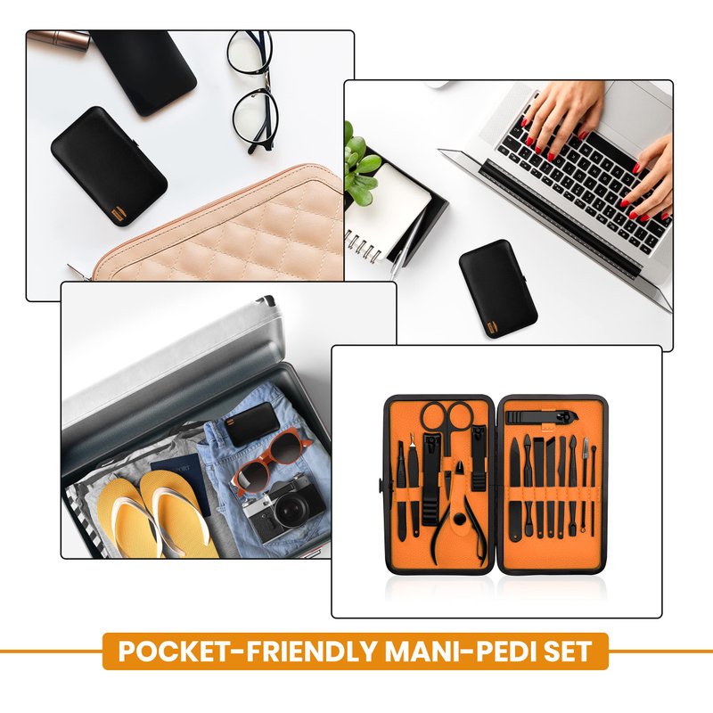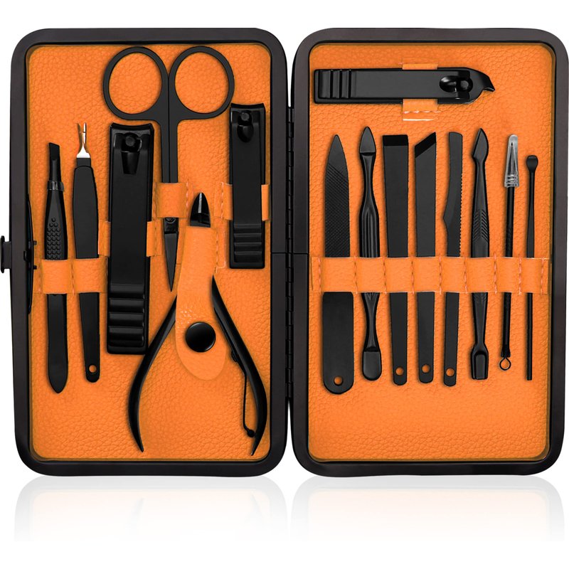 15-Piece Manicure Set for Women Men Nail Clippers Stainless Steel Manicure Kit - Orange