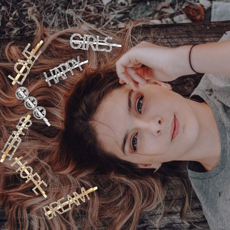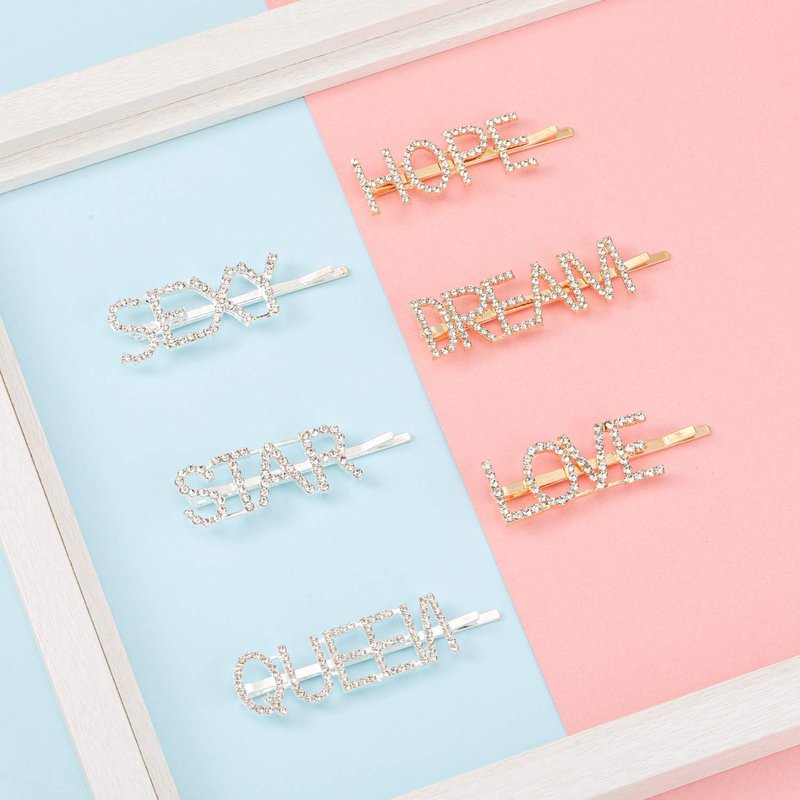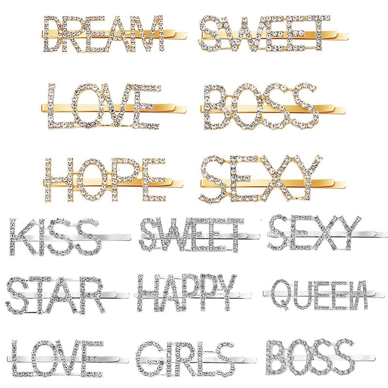 15 Pieces Words Letter Hair Pins Glitter Rhinestone Hair Clips Straight Letter Hair Pins Barrettes for Women Ladies Girls (Stylish Style)