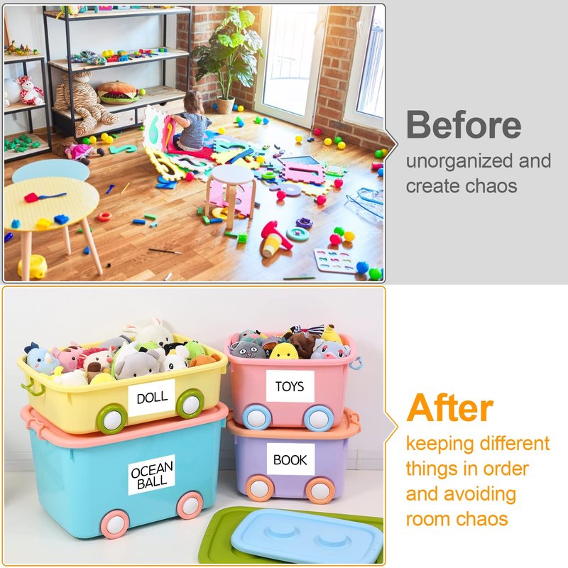 - Multipurpose Organization: Our Removable Labels for Storage Bins are perfect for home, school, and enterprise use on storage containers with flat, smooth surfaces. Storage Bin Labels Effortlessly organize kitchen utensils, office supplies, clothing, holiday decorations, toys, or tools. Make your items easy to sort and identify.