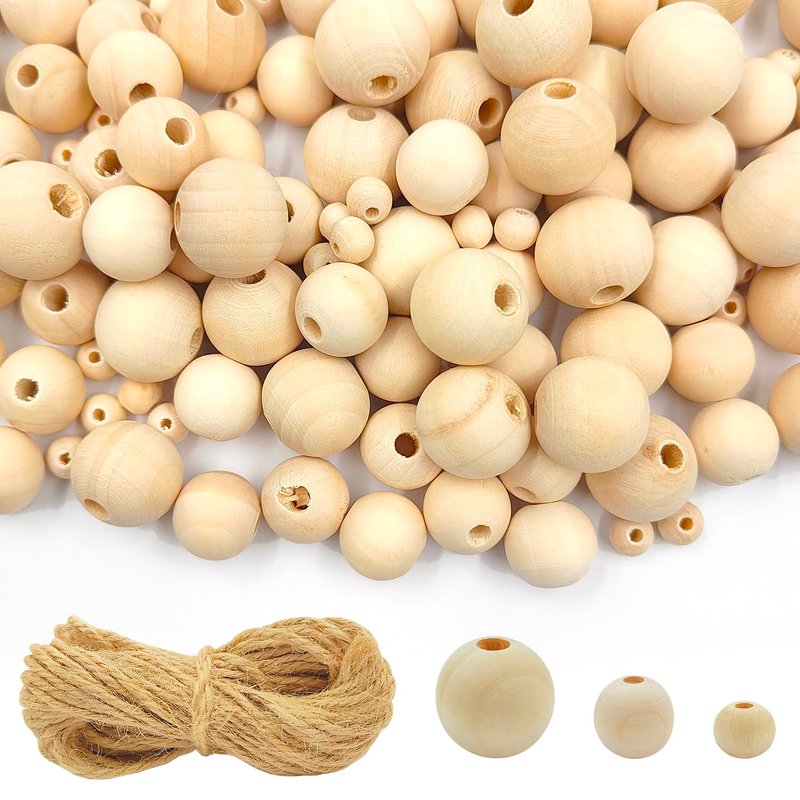 - Size Details: The multipack of 150 pieces comes with the right number of small and large wood beads in 3 sizes, 6mm, 8mm,20 mm, and 10m Jute Twine.