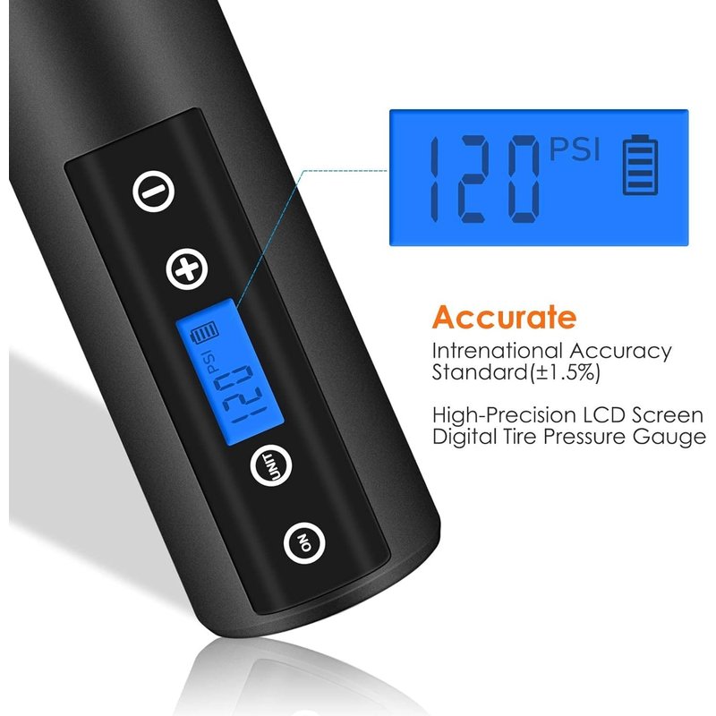 - 🚗【Portable Design & LED Light】Mini-body, The cordless tire inflator is in small size, light and easy to carry and travel. Professional safety overcurrent, overvoltage, overcharge protection to make you enjoy the inflation process. Dual LED Digital Pressure Gauge Air Compressor Pump,The equipped bright LED flashlight can helps you see clearly in emergency situations at night, also useful for inflating at night, , which allows you to keep it in the automobile and give you help in time.