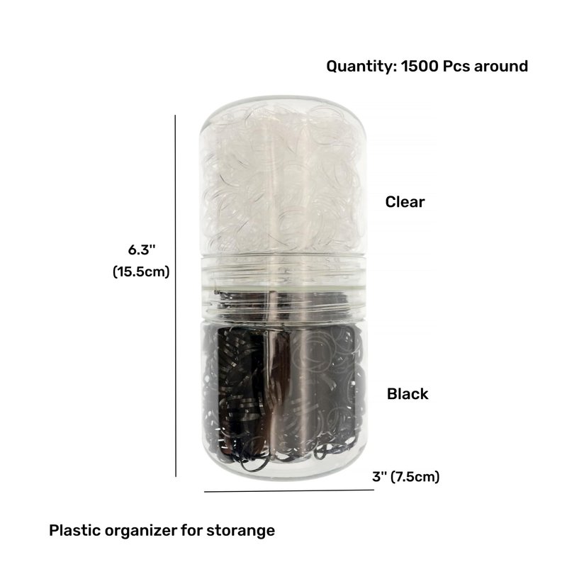 1500 Pcs Mini Hair Rubber Bands, Non-slip Rubber Hair Bands for Girls Hair Braids, Hair Elastic Hair Ties (Black and Clear)