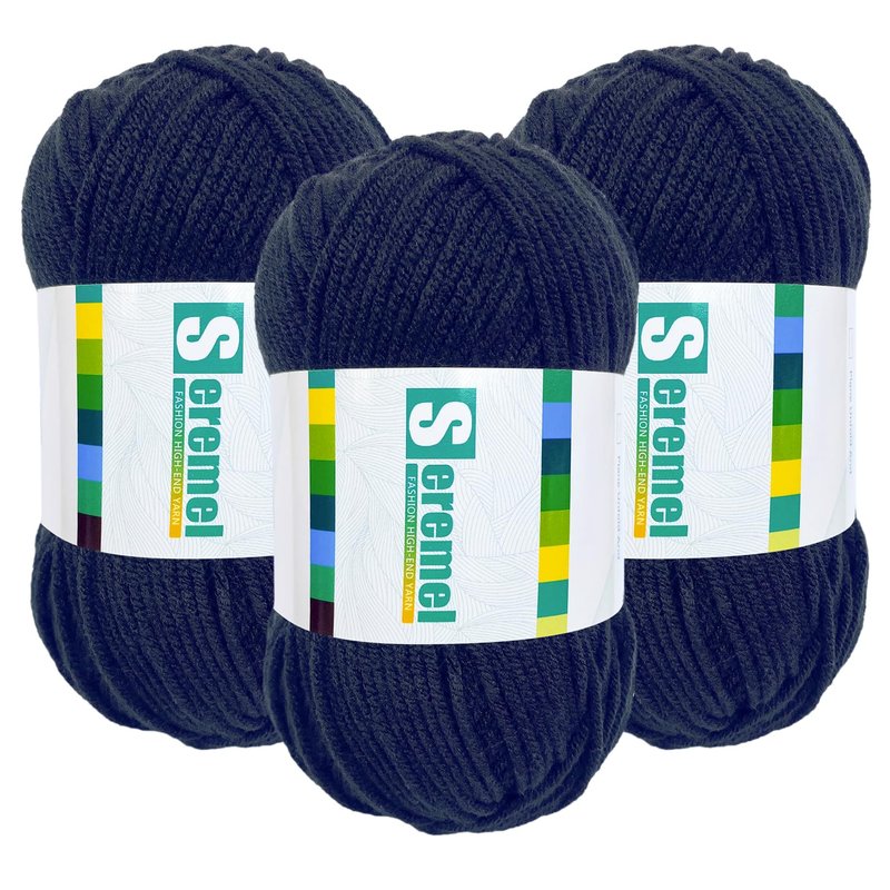 150g (3x50g) 3 Pieces of Mixed/Solid Color Crochet Knitting and Handicraft Yarn in Bulk, Fluffy and Soft, Worsted 100% Acrylic Yarn (Carbon Black)