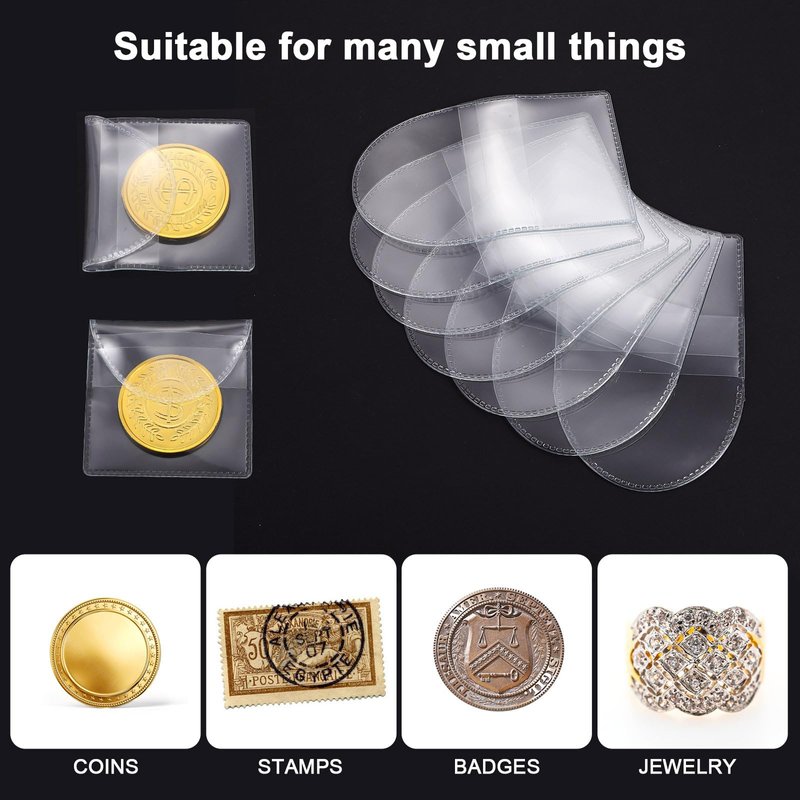 - Jewelry Pouch: These coin pouches are designed with a flap that is easy to put in and take out; securely sealed to provide extra protection against loss of items inside. The pouches are highly transparent and clearly visible, making it easy to view and display the contents without removing the coins