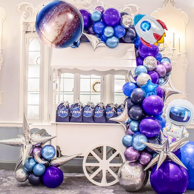 - WIDE APPLICATION: This outer space party decorations can be made into a fantastic navy blue purple silver balloon arch,suitable for space themed party,moon themed party,rocket themed party,NASA or astronaut's themed party,boys party,baby shower,wedding,birthday,graduation,engagement,anniversary,gender reveal party,home indoor and outdoor party, etc.
