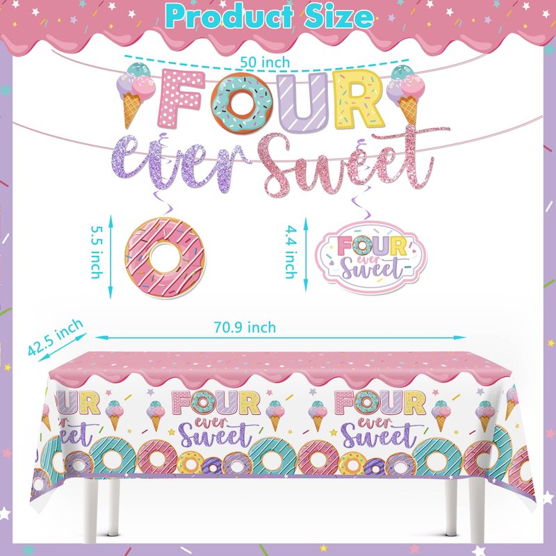 - 【Widely Applications】: Our four ever sweet birthday decorations girl are suitable for 4 ever sweet birthday decorations girl, growing up theme party, donut 4th birthday party, happy 4th birthday, cheers 4th anniversary, sweets party decorations, baby shower and more.