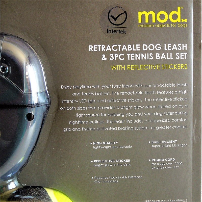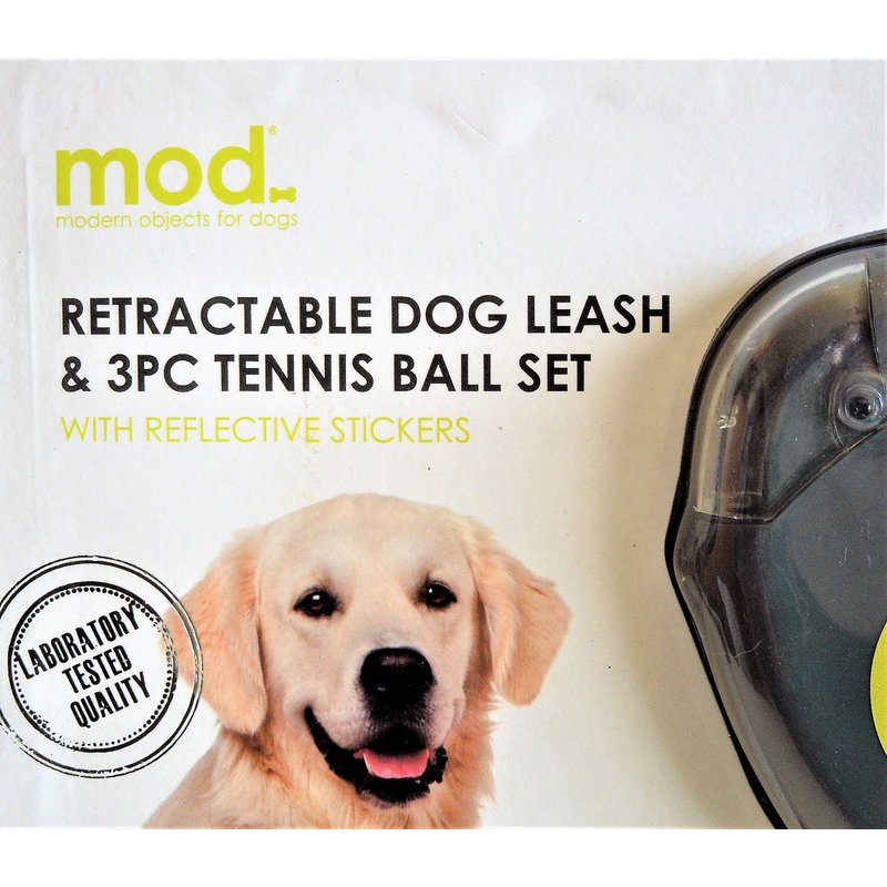 Enjoy playtime with your furry friend with our retractable leash and tennis ball set. The retractable leash has reflective stickers on both sides that provides a bright glow when shined on by a light source for keeping you and your dog safer during nighttime outings. This leash includes a rubberized comfort grip and thumb-activated braking system for greater control.