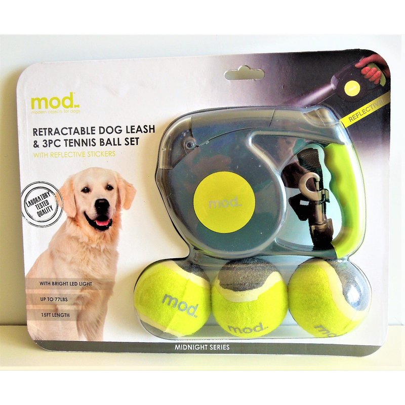 15ft Retractable Dog Leash & 3pc Tennis Ball Set with Reflective Stickers
