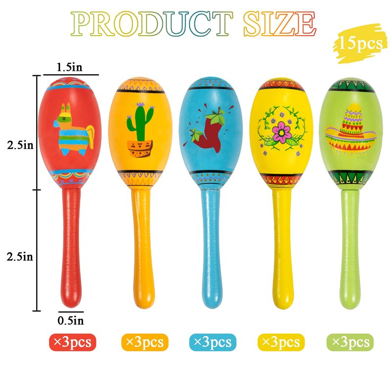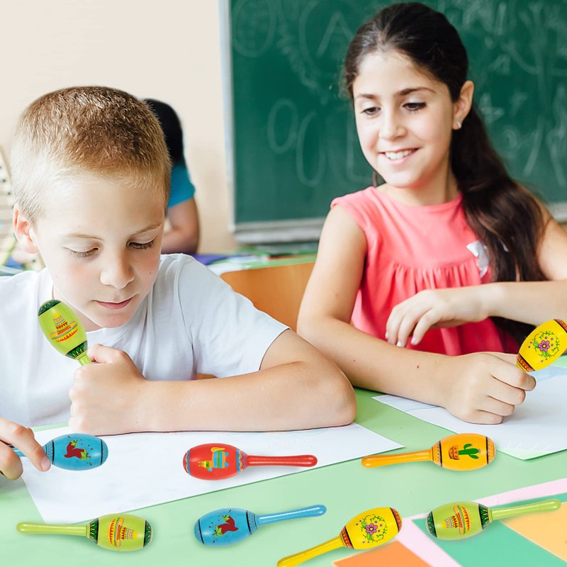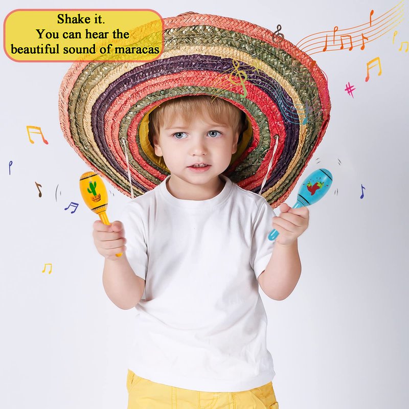- Mini Kids Maracas: Each pinata filler maracas measures about 1.5”*5”, mini and cute, perfect size for kids over 3 years to hold and shake, it's a great start in music for your little ones. They will instantly add joy and festive atmosphere for your mexican fiesta party when kids start to shake them