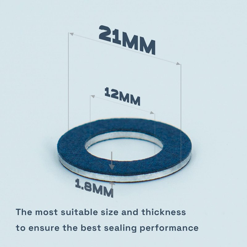 - HIGH-QUALITY MATERIAL --- The oil drain plug crush washer is made of 99% Premium Pure Aluminum and High quality sealing fiber material, Excellent sealing performance, No oil leaking.
