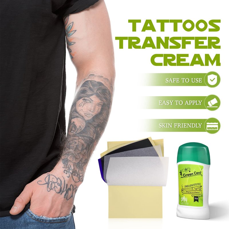 15Pcs Tattoo Transfer Paper and Gel Kit: Tattoo Transfer Gel for Transfer Stickers Paper Machine Stencils - Temporary Tattoo Supplies - Green Soap for Tattooing Tattoo Deodorant Stick