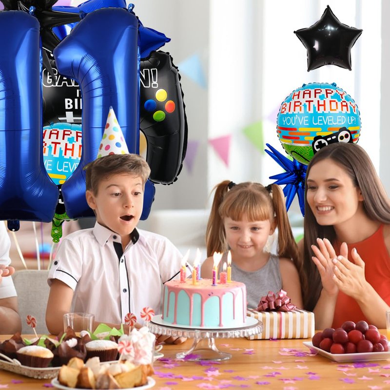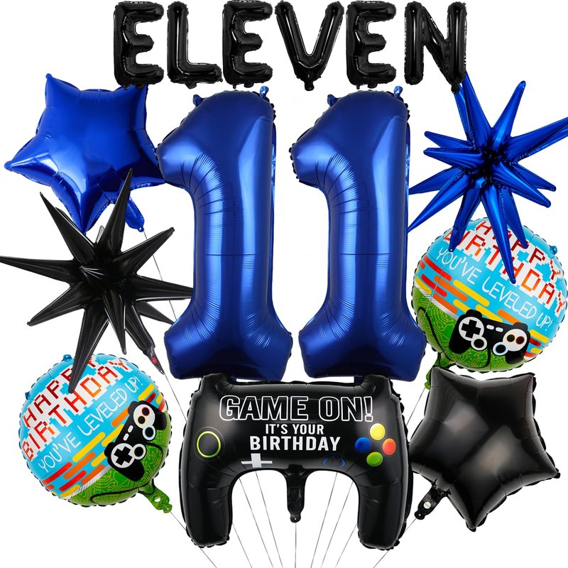15pcs Video Game Themed Party Decorations, Number 11th Boys Birthday Party Supplies, Navy Blue Video Game Controller Mylar Foil Balloon, Video Game Party Decoration Supplies