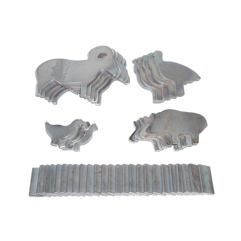- Set includes 5 Chickens (2 ½” x 2 ¼”), 5 Turkeys (4” x 4 ½”), 5 Pigs (4 ½”x3”) and 5 Rams (6 ½” x 5¼”)