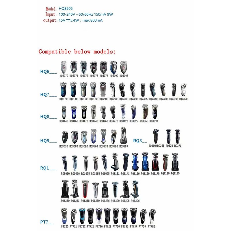 - Fit for Philips Norelco HQ8505, 7000 7100 7200 7300 7400 7500 7600 7700 5000 5100 5200 5500 5600 5700 3000 3100 3500 4100 4200 4500 6100 8000X 8500X 8900 9300 9700 Series Shavers, most Norelco Aquatec, Arcitec and Multigroom Shavers, Razors and Trimmers. Compatible part numbers HQ8505 AT810/41 AT830 BT5210/42 BT7215/49 PT724/41 PT730/41 QG3364/42 QG3330 QG3330/60 QT4018/49 S7370/84 S9311/84 S9721/84 YS524/41 HQ-8505, NL9206AD-4, 272217190075, 272217190076 272217190137