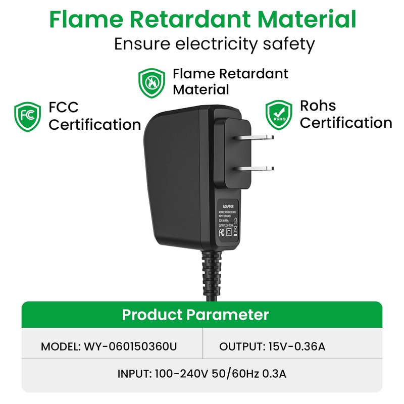 - 【What You Get】: ( Package Includes: 1 * 1M 15V (HQ8505 ) Power Cord / 1 X 15V 0.36A Power Adapter) , 30 days money back, 12-month worry free exchange and our friendly after-sales service. Any questions, please feel free to contact us