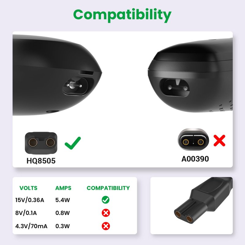 15V Shaver Charger Cord Fit for Philips Norelco HQ8505 9000 7000 5000 3000 Series Electric Shaver Razor,Aquatec,Arcitec,Multigroom Beard Trimmer Replacement HQ8505 Adapter Power Cord (15V 0.36A 5.4W)