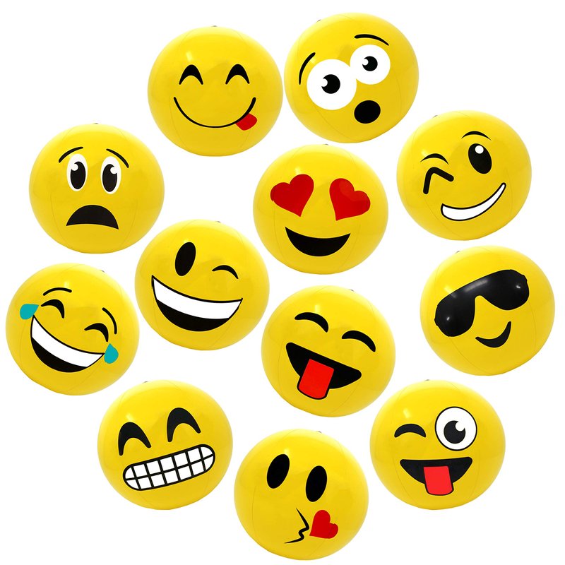 16" Emoticon Party Pack Inflatable Beach Balls - Beach Pool Party Toys (12 Pack)