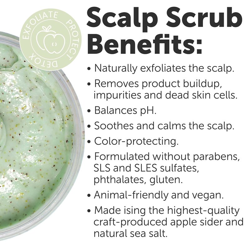 - Refreshing & Invigorating: Indulge in a refreshing experience with our green scalp scrub. The unique blend of apple cider and sea salt leaves your scalp feeling refreshed, rejuvenated & thoroughly cleansed.