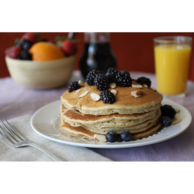 Experience the unique blend of 16 different grains chosen for both flavor and nutrition. Stone milled to include all parts of the grain. Feel the satisfying difference between wholegrain and white flour pancakes. Makes delicious waffles as well. Can be made vegan with an egg replacement such as ground chia, flax or other egg replacer. Mix is not overly sweet to allow good pairing with both savory and sweet toppings.