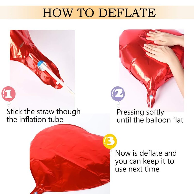 - Reusable: Self-sealing valve, convenient inflation, and deflation, please repeatedly pinch the inflator, to ensure that no air leaks, and balloons can be deflated with a straw to facilitate repeated balloon use.