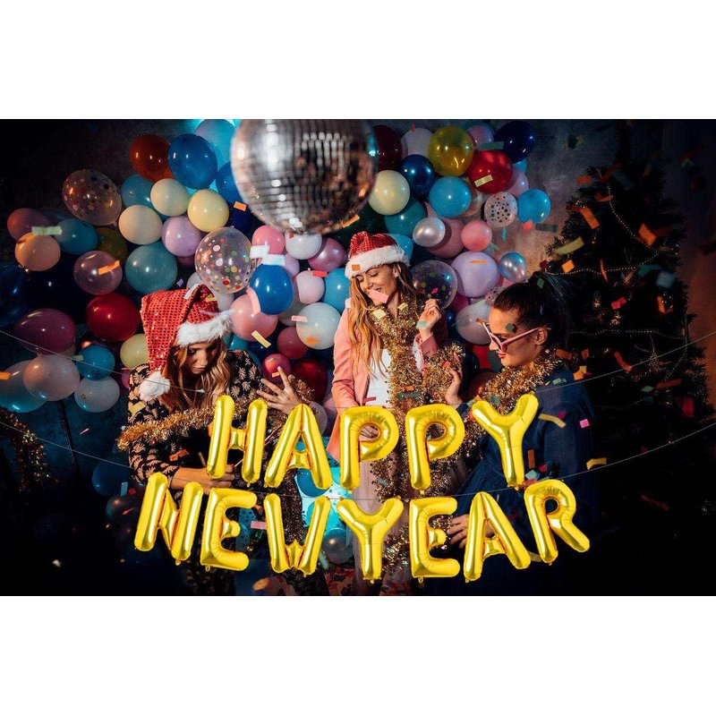- WHAT YOU WILL RECEIVE: You will receive a set of 16-inch Gold Happy New Year Letter Balloons (uninflated), along with a 33-foot roll of ribbon and one straw. These Happy New Year Letter balloons are designed to fulfill your balloons needs for a New Year-themed party.