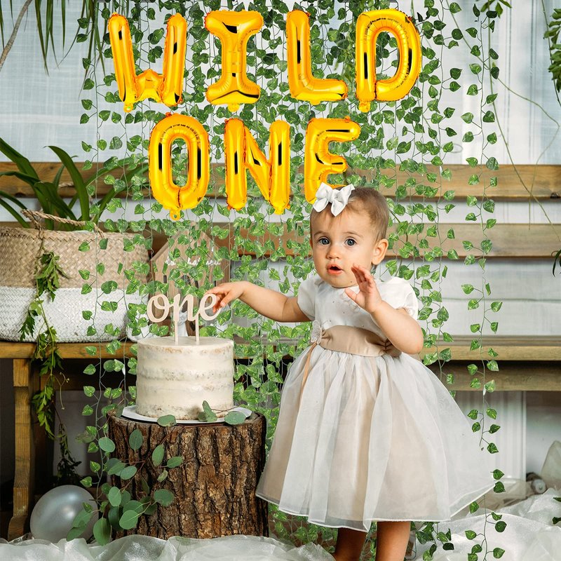 - Wild one birthday decorations kit: package includes 16 inch wild one kids first birthday balloon and 12 pieces of artificial ivy garlands; Celebrating your baby first birthday with these nice combination set