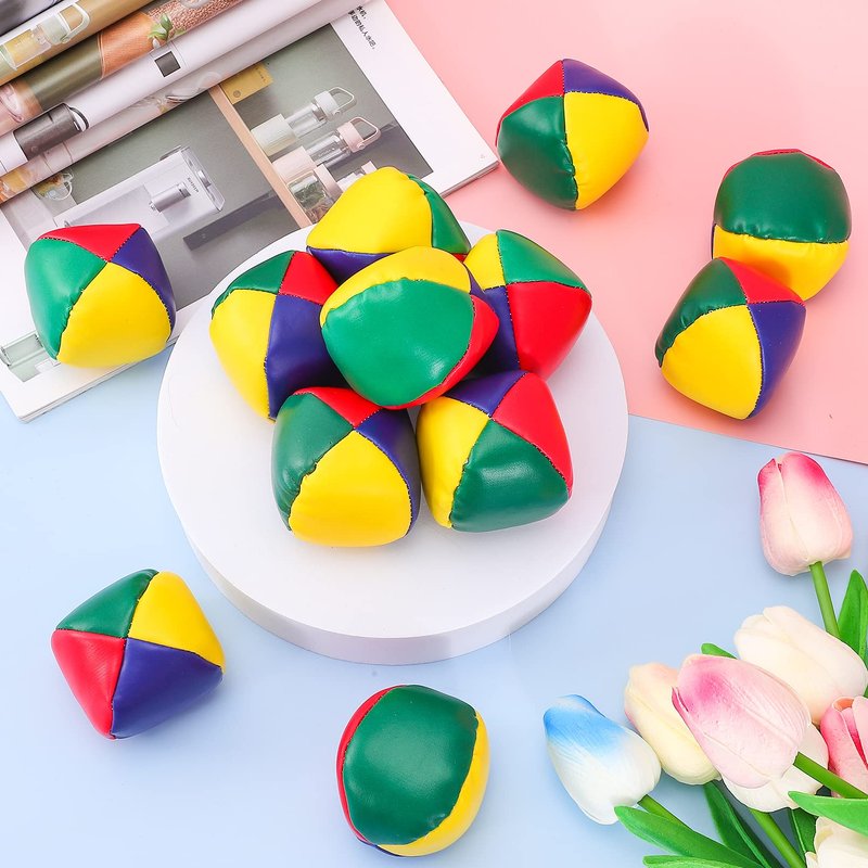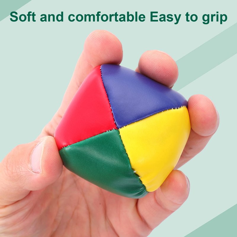 - ⚾Attractive Design: The juggling ball has an irregular circular design that prevents bouncing and rolling. Each juggling ball is made up of 4 brightly colored sides, which look cute, interesting and eye-catching. The smooth and soft material gives you a good feel, suitable for a lot of people to play with.
