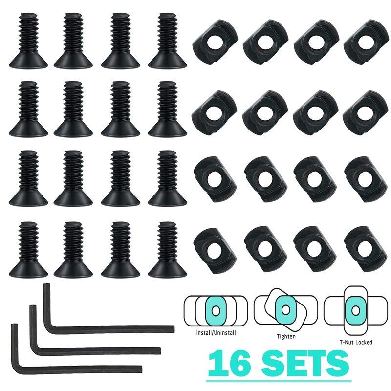 - Includes16 sets of MLOCK Thread Locking Screws and T-Nuts,1 pcs Allen Wrench.