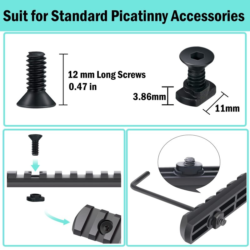 16 Pack M5 T-Nut Screw Replacement Sets,Compatible with Rail Mount, with Thread Locking Screws, Wrench and Nuts, Hardware for Standard Rail Systems (16 x Screws, 16 x Nuts and 3 x Wrench)…