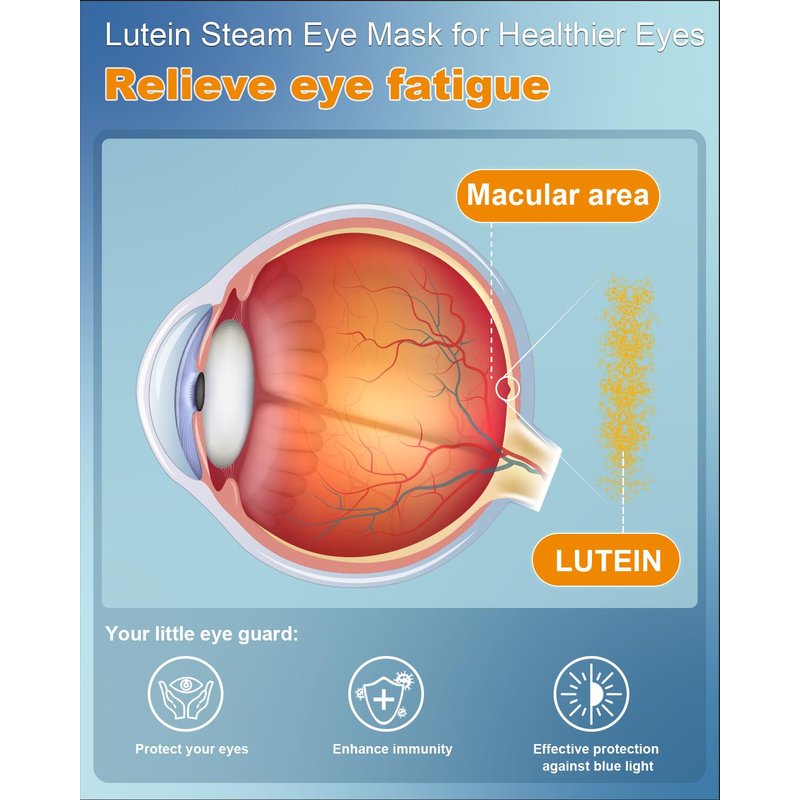 ✔ AUTO HEATED LUTEIN STEAM EYE MASK- WHY LUTEIN? Protect your eyes;Enhance immunity;Effective protection against blue light.No need microwave or electric plug, just open and put on, it automatically starts heating and warming up. Take a anti-wrinkle energizing spa treatment without go to spa.