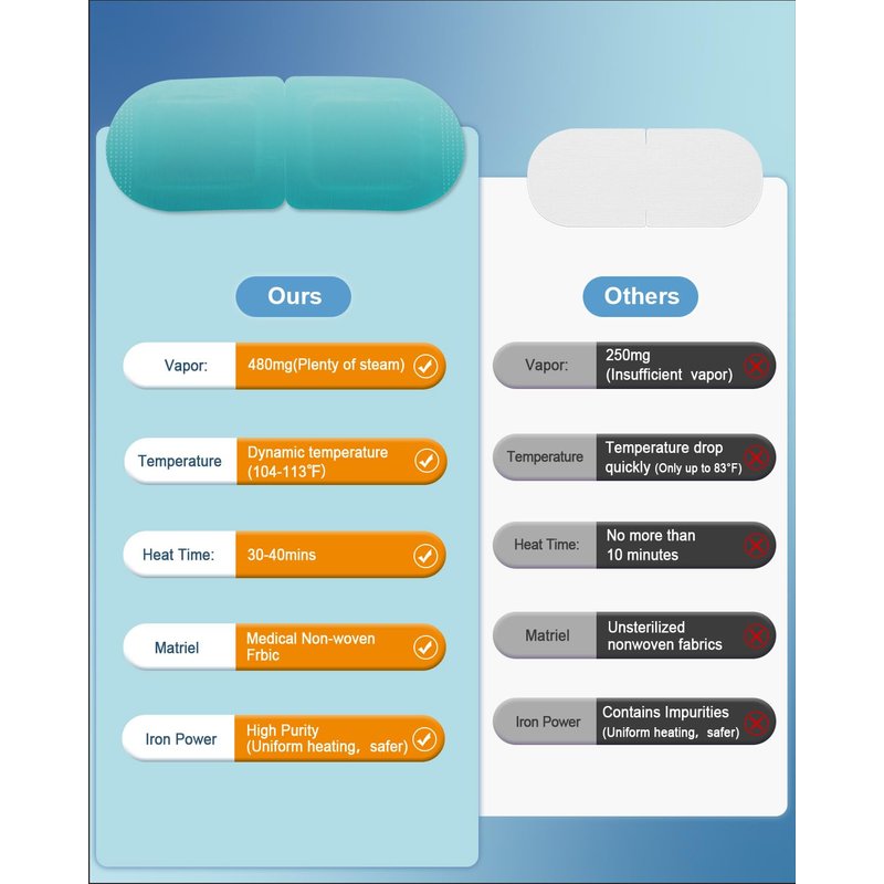 - ✔WARM AND RELAXING- The temperature of the Disposable Steam Eye mask Only 104℉-113℉. it ‘s just higher than the human body’s temperature in a little bit. so you will feel warm but not hot. This temperature lets you relax to sleep easily.