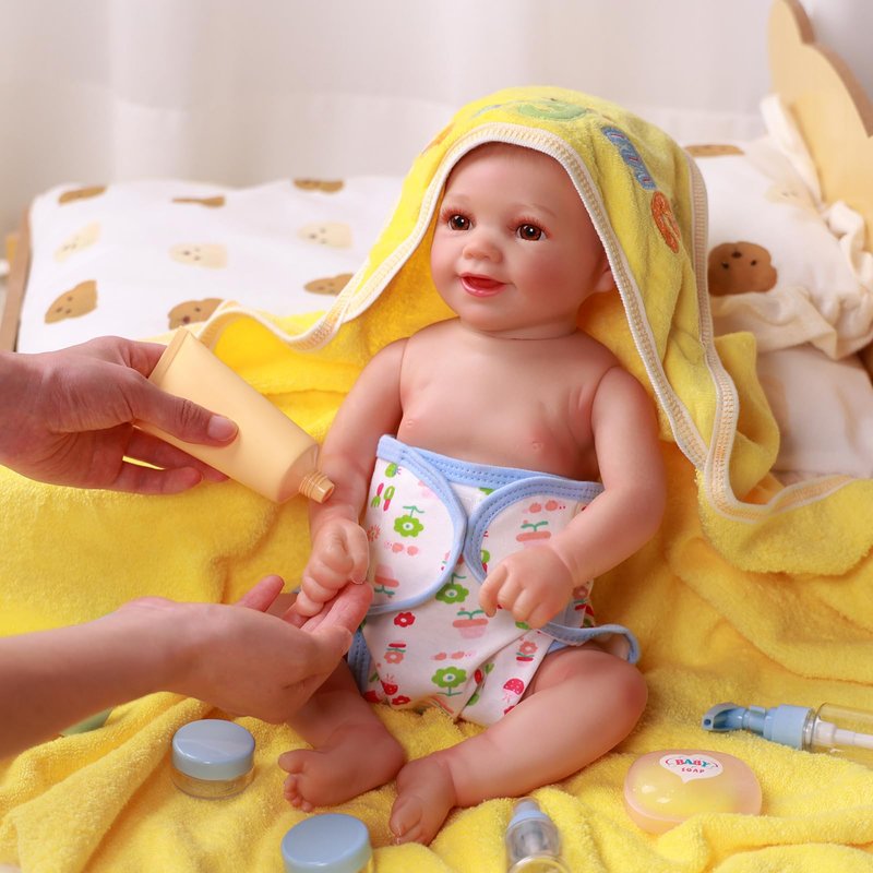 - PACKAGE INCLUDES - This set includes a bath towel, a diaper, a handkerchief, a towel, a rabbit shanped comb, soap and soap box, pretend cream and shampoo protable bottles, bottle-shaped rattle, tissue box and sticker. Kids can stick the sticker on the portable bottles or anywhere they like.