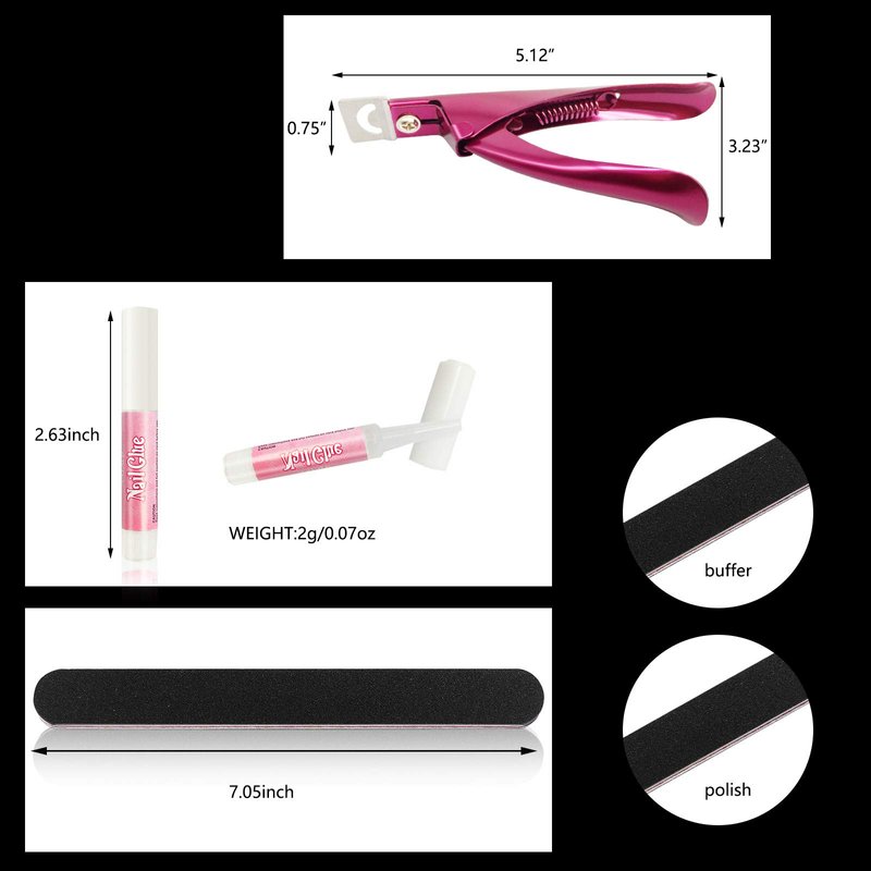 These nail tip clipper glue tools contain nail tip glue, false nail clipper, emery board and nail buffer file, can be applied for daily manicure, nail polish, nail art and more;