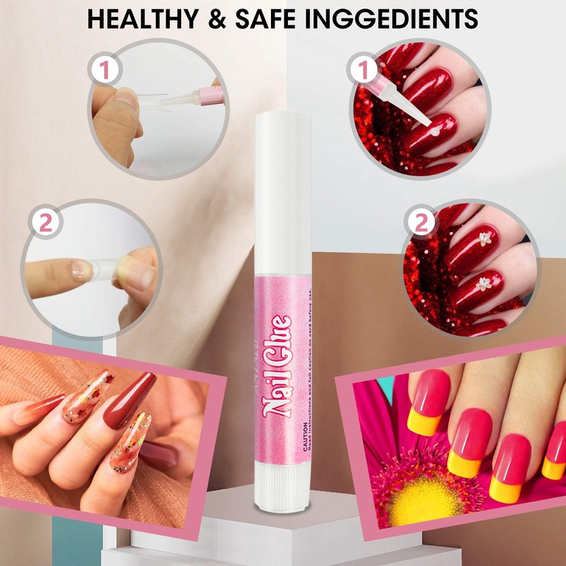 - ✂ Safety Acrylic Nail Glues: Our nail tips glue is made of ethyl cyanoacrylate, natural resin,fast drying,quick bonding,adhesive perfect,0.07oz/2g per tube.Easier for sticking artificial nail tip, little rhinestones, gold foil and such decorative nail ornaments.