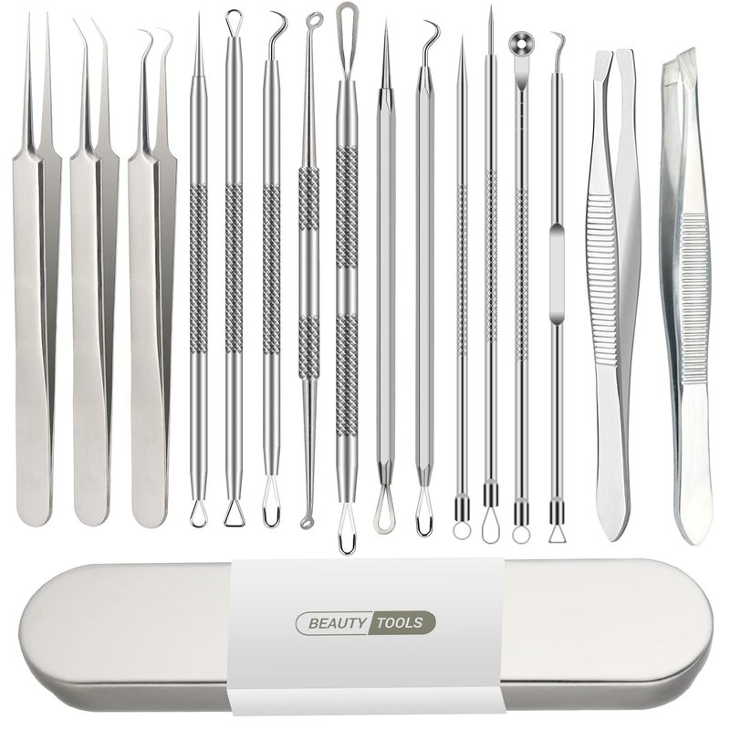 16 PCS Pimple Popper Tool Kit, Blackhead Remover Tools, Acne Extractor Tool, Cyst Removal Tool, Professional Stainless Steel Tweezers for Eyebrows Pimple Blemish Hair Removal, Tools for Beauty Salons