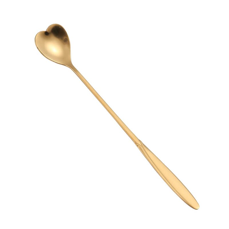 16 Pieces Heart Shaped Spoon Coffee Teaspoon 7 Inch Set Stainless Steel Long Handle Spoon Stir Bar Spoon Stirring Spoon Ice Cream Spoon Gold