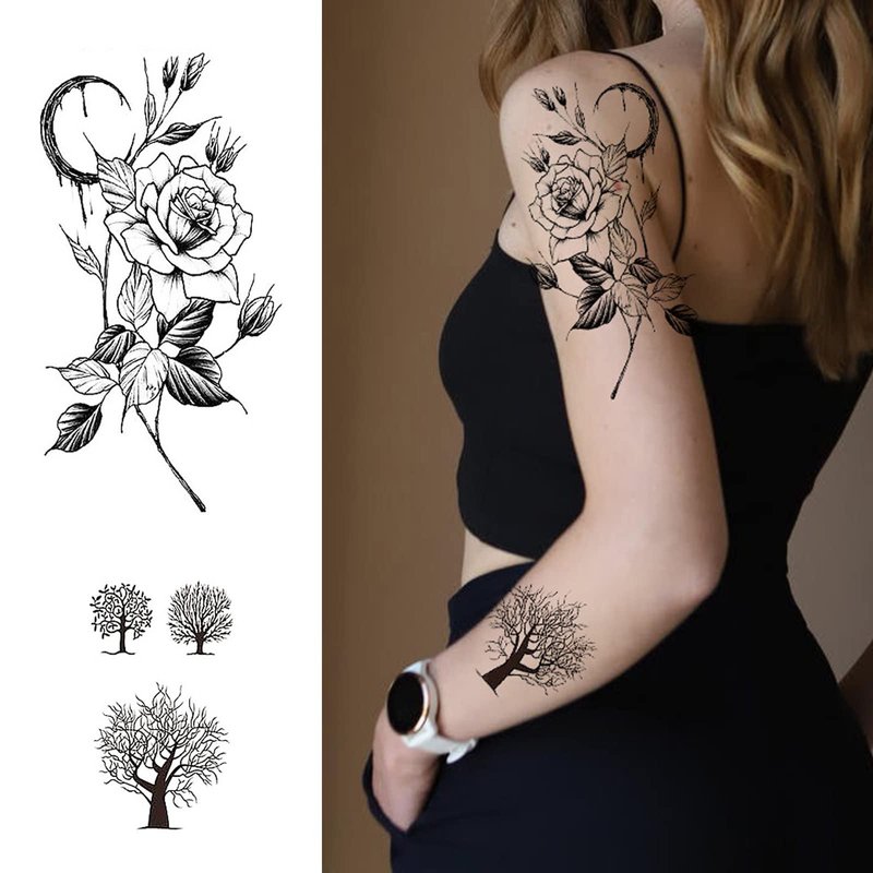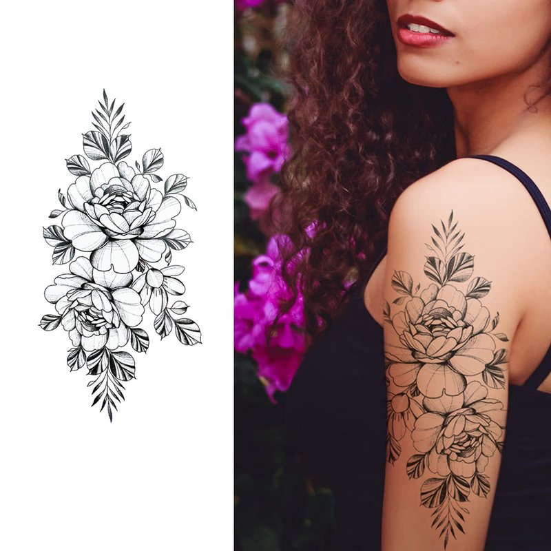 - TEMPORARY TATTOOS - Black flowers fake tattoos stickers for women used for shoulder,wrists,legs,body arm,hand,feet,neck and any other part of your body art. also can apply it to decoration stickers on glass, cup etc