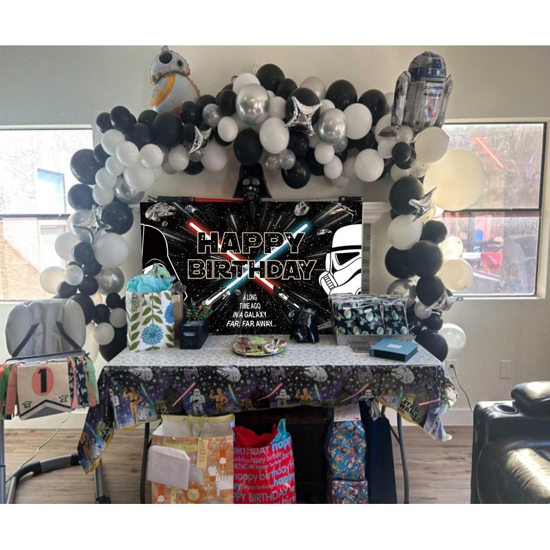 165Pcs Star Galaxy Theme Birthday Party Decorations 1pcs Universe Star Birthday Backdrop 164pcs Black Silver White Latex Balloons Garland Arch Kit Star Birthday Party Supplies
