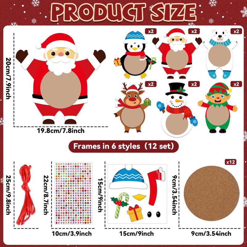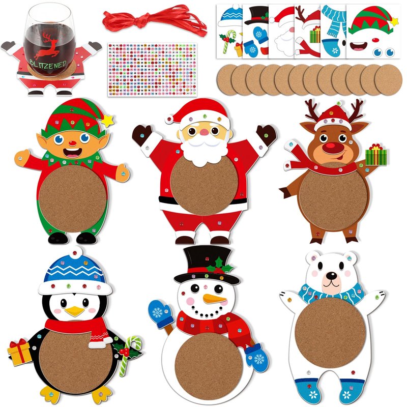 - Package includes: You will get 12 sets of Christmas foam coaster craft kits, including 12 set Christmas foam boards in 6 designs(penguin, snowman, Santa Claus, reindeer, bear, and gnome), 12 round coasters, 12 ribbons, 12 sheets of stickers for faces with 128pcs of stickers and 1 set colored diamonds with 375 diamonds, which can meet all your creation needs; This considerable quantity means everyone in your family or Christmas party can gets one.