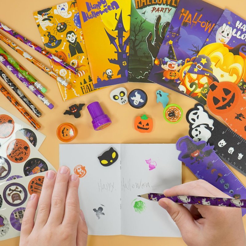 - 🎃【Creative Fun Halloween Bags】Each toy of Halloween Stationery Gift Set showcases spooky and cute Halloween designs, including pumpkins, ghosts, bats, and more! Kids will love using the stationery for drawing, writing, or decorating, adding festive fun to their day.You don’t have to worry about assembling different Halloween toys for kids.