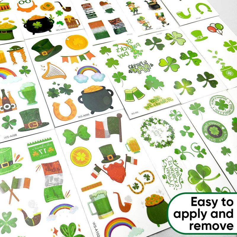 - Easy to Apply and Remove: Our St Patrick's Day tattoo stickers are easily adhere to your skin, and you can remove the St. Patrick tattoos by rubbing the area with make-up remover cleansing oil or soap.
