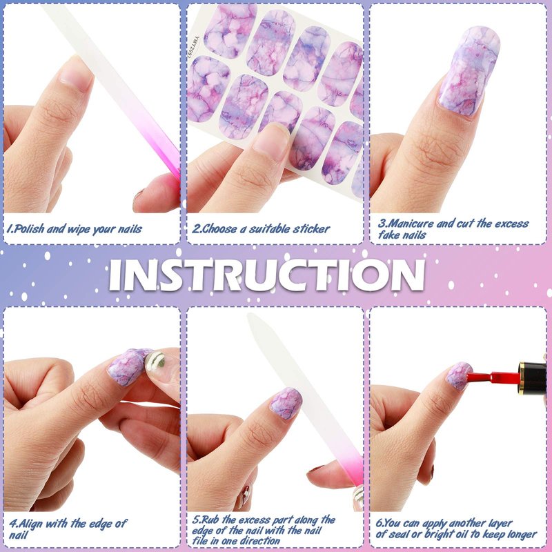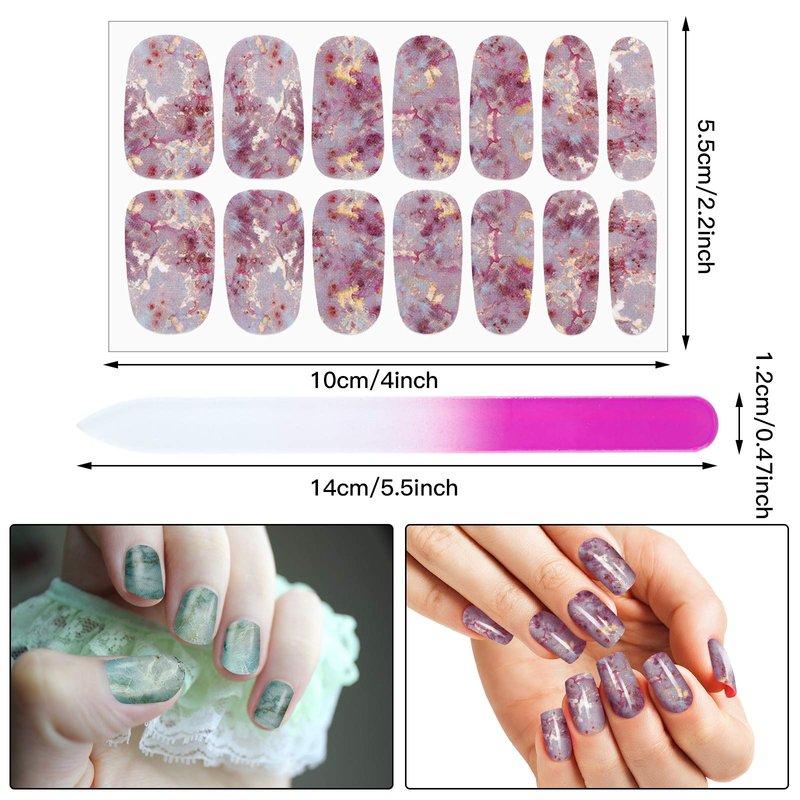 - What you get: comes with 12 sheets gradient marble full nail stickers in different patterns and sizes, each sheet contains 14 pieces, totally 168 pieces, sufficient to meet your DIY nail decoration needs, comes with 1 piece nail file, can bring much convenience to the DIY process