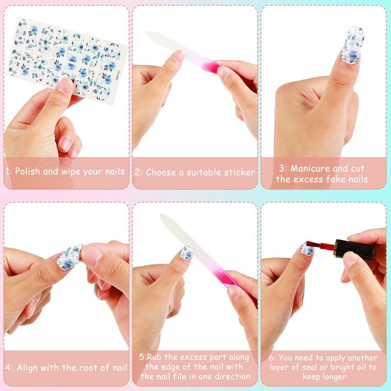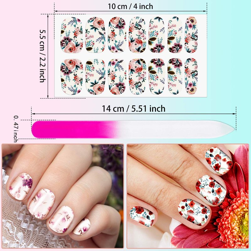 - Wide applicability: the full wraps flower nail polish stickers can be applied on natural or artificial nails, toenails, acrylic nails and more, suitable for both nail salon and home DIY use; Not only can you wear them in your daily life or on a date, birthday party, banquet, wedding ceremony and more, which can add more charm and beauty to you, you can also share with your friends and enjoy a relaxing and happy DIY time decorating your nails together
