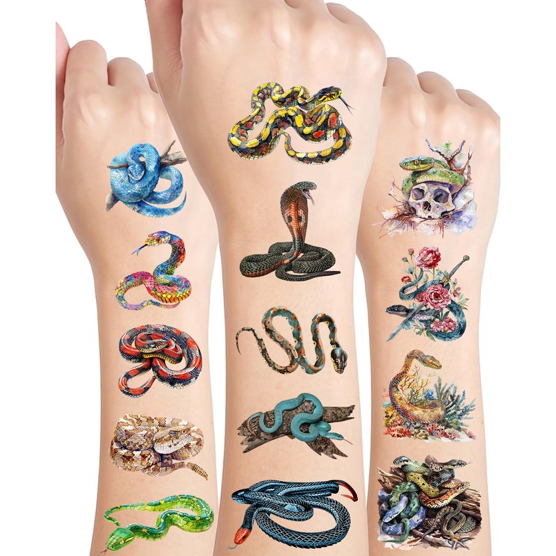 - Easy to Use Snake temporary tattoos, Cut out the desired motif,remove the plastic covering film of Reptile temporary tattoo,then stick the tattoo face down on the clean and tidy skin,wet the tattoo with water,gently pat and press for about 30 seconds,then tear off the paper